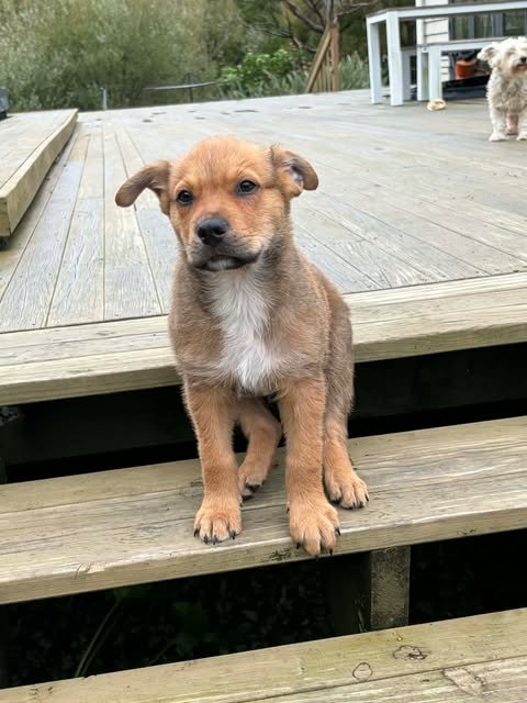 My name is Bear, DOB: 13.01.26. I was found in Pōkeno with my sister Pixie, we are currently being fostered in dairy flat. I’m a gentle, cuddly boy who is always up for adventures outside and following my foster mum around. I’m learning about cats, chickens and other dogs (from 1yr old-14yrs old) I’m getting good at toilet training and I sleep all night in my crate.