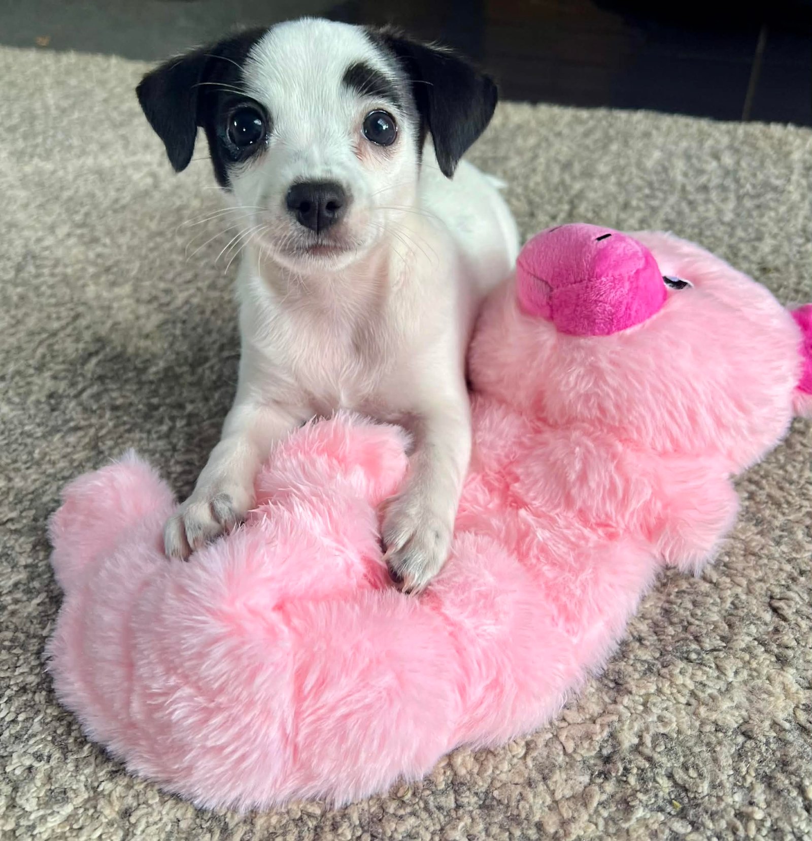 Indie is the teeny tiniest pocket rocket of love! This fun sized bundle of puppy energy, is outgoing and sweet. She loves her cuddles and has the most comical eyebrow marking. Born 13/12/25 and fostered in Waiuku, Indie is a playful small breed girl (possibly some Jack Russell in her mix, so expect the energy and the need for plenty of room to run around). Indie is a happy, active girl who aims to please and loves to be around people, having a smooch or play. She is well socialised with our dogs and is used to all the farm noises. Toilet training has started and will be completed by her forever family. She sleeps peacefully all night and has been in an open crate with her sister. Indie is a true joy to foster and will be a beautiful best friend to her forever family, especially if they have children for her to play with. Indie’s first and second vaccination, microchip and de-sexing are all covered by Saving Hope under the adoption process. Pop in an application to chat and arrange a no obligation to adopt meet and greet.