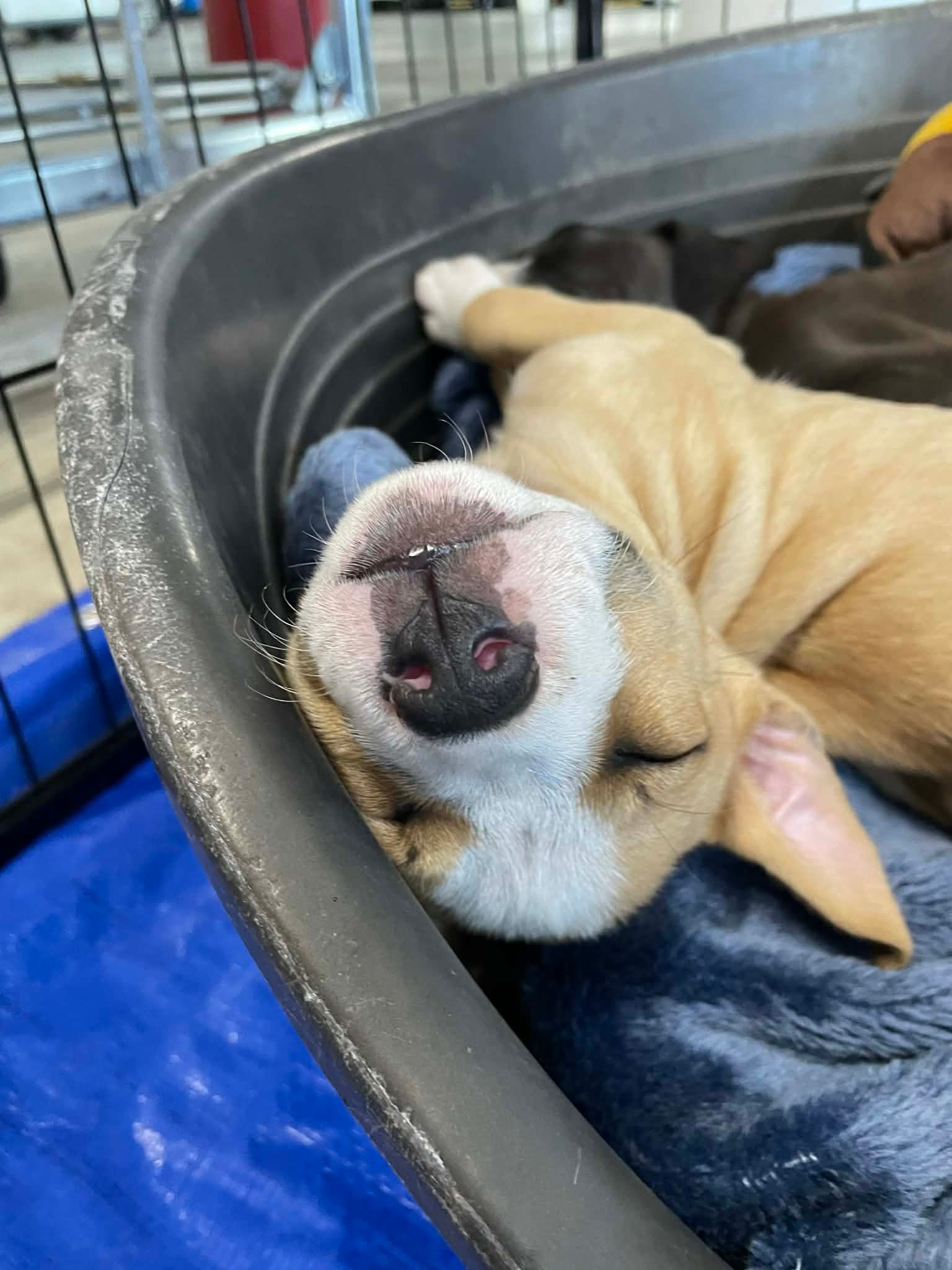 Hi I’m Ludo. I was born on 19 January 2026 and I am looking for my furever home. I am a confident little pup who likes to pretend I don’t need snuggles but secretly I really quite like them. I love exploring outside in the garden where there are lots of exciting things to see and do. I quite like a game of tug of war with my siblings or any human who is happy to play with me. I am learning to play with the older dogs who live in my foster home but sometimes I am more keen to play with them than they are to play with me. There are 2 cats in my foster home but I haven’t met them as they live in a different part of the house. There are also two older teenagers who I love playing with. My toilet training is progressing and I sleep through the night. You can apply to adopt me now. Fostered in Riverhead.