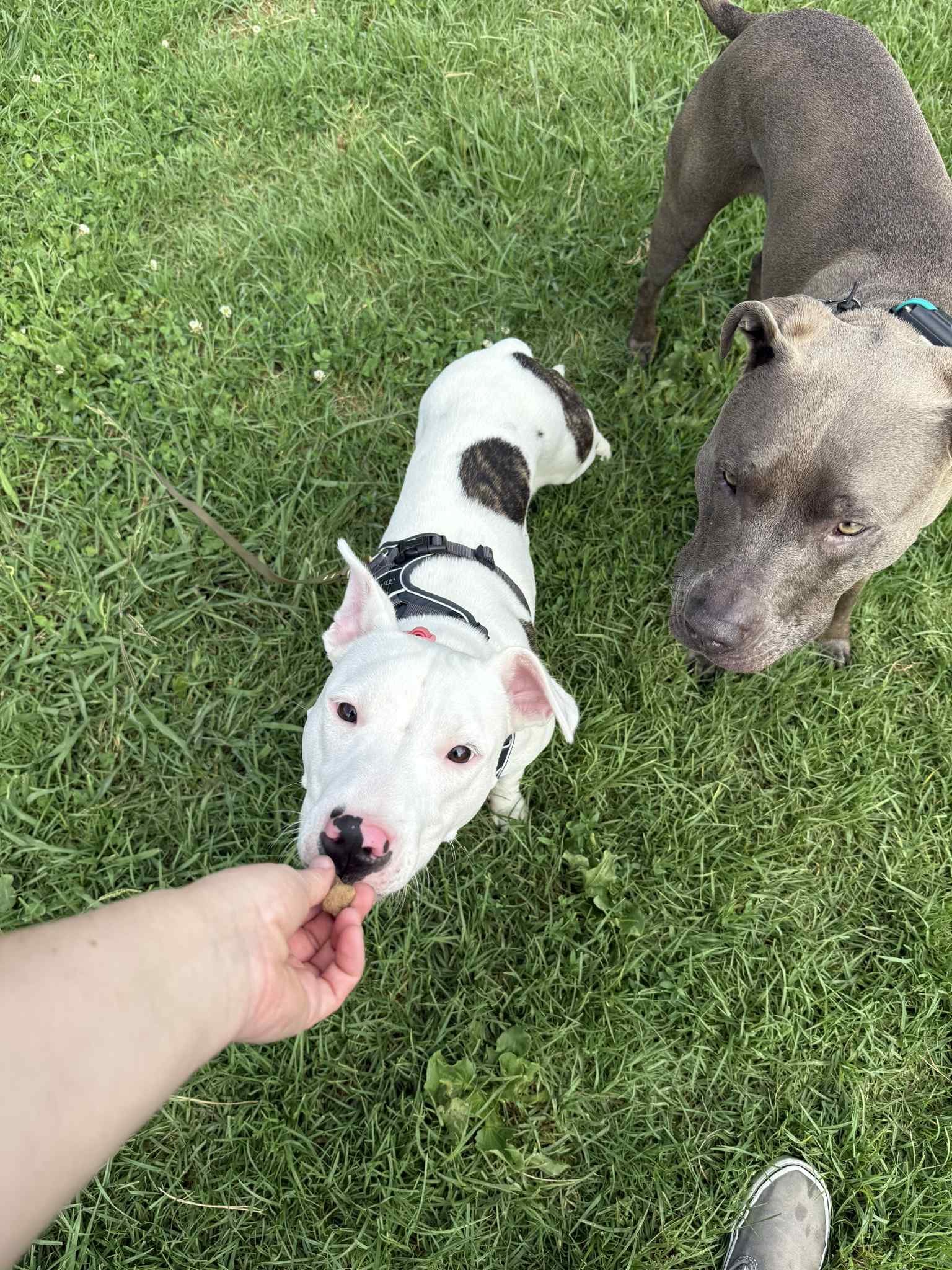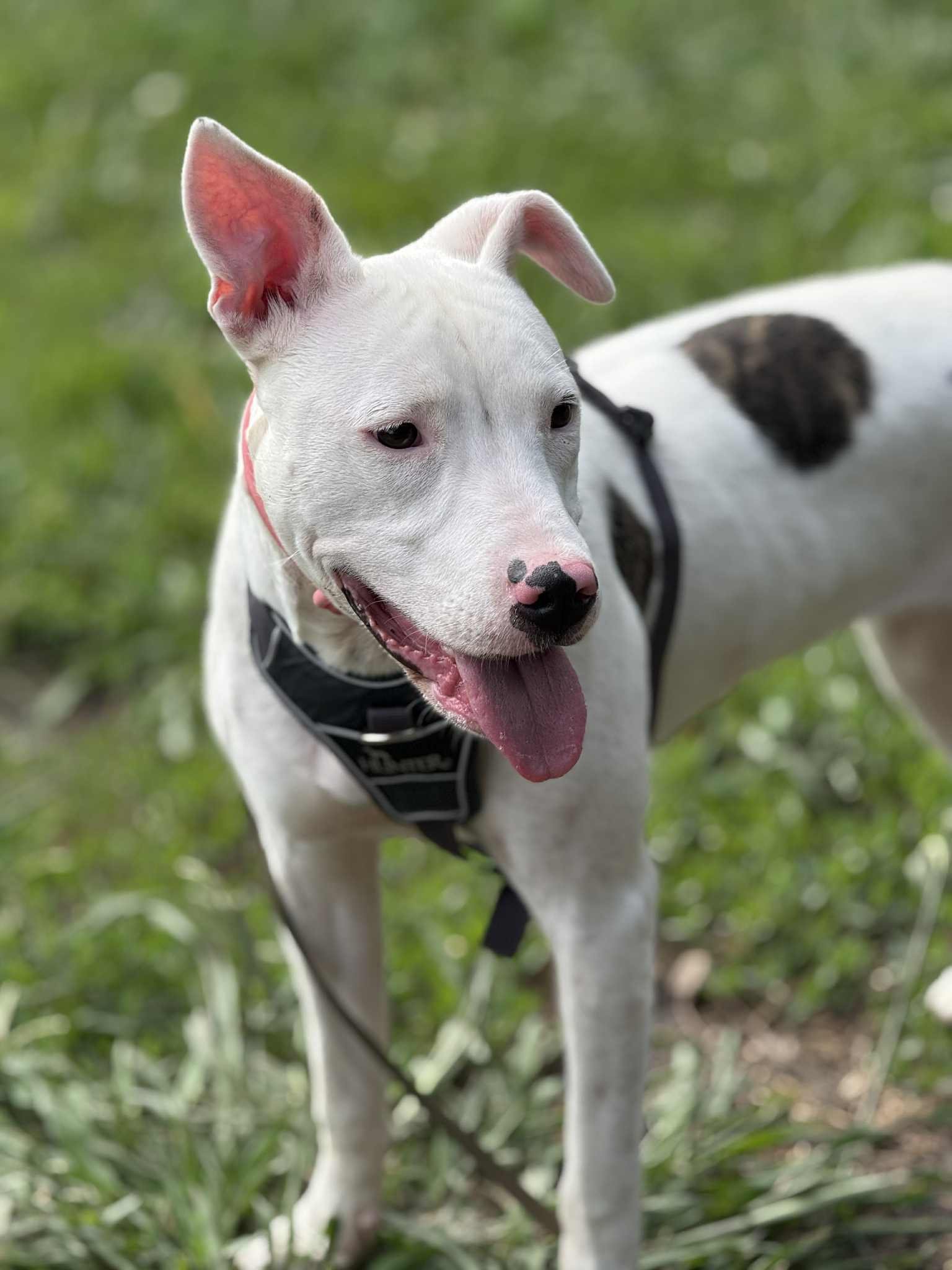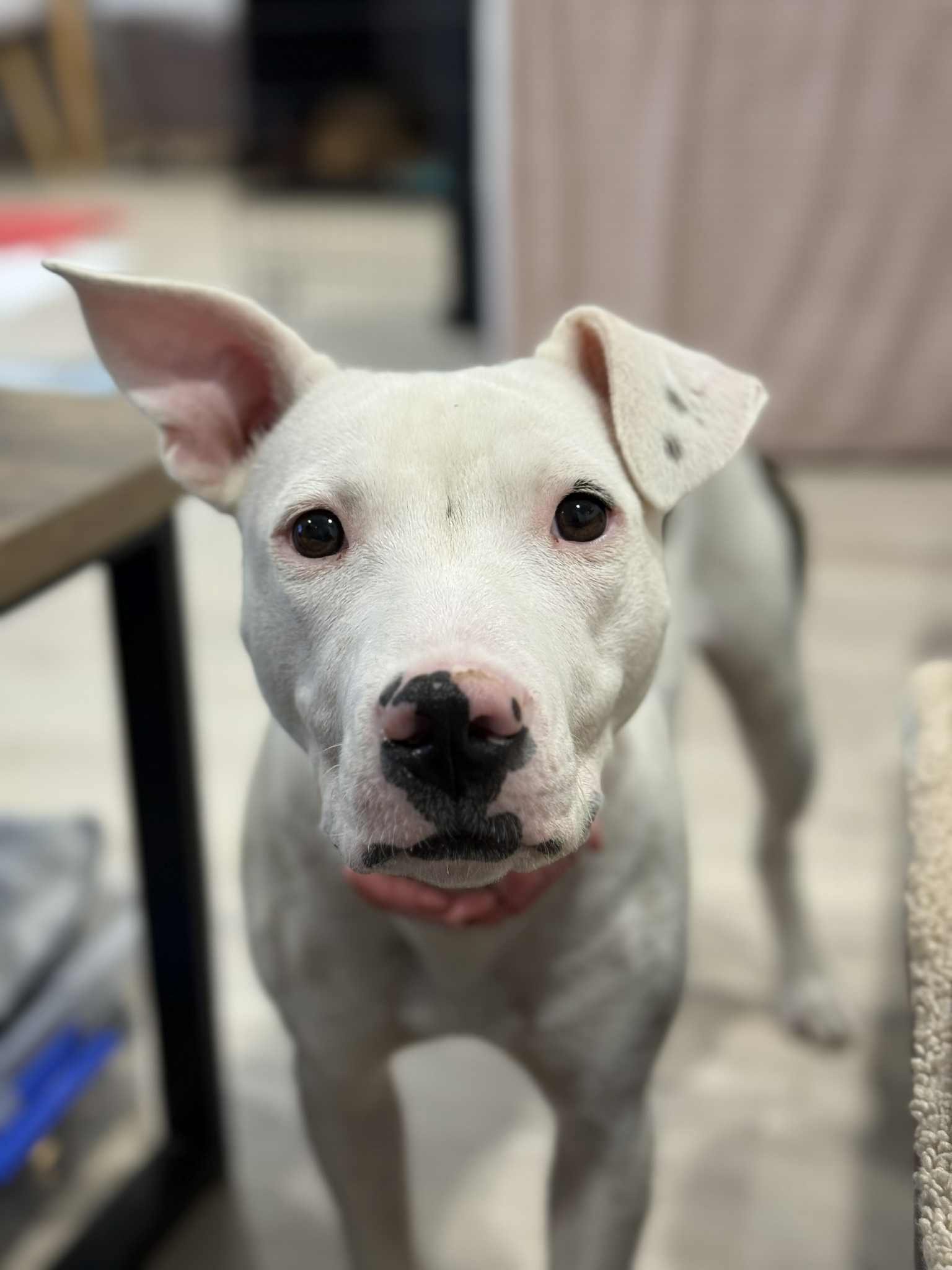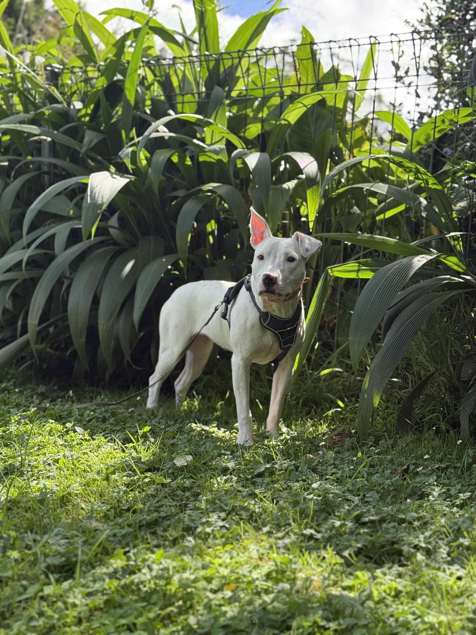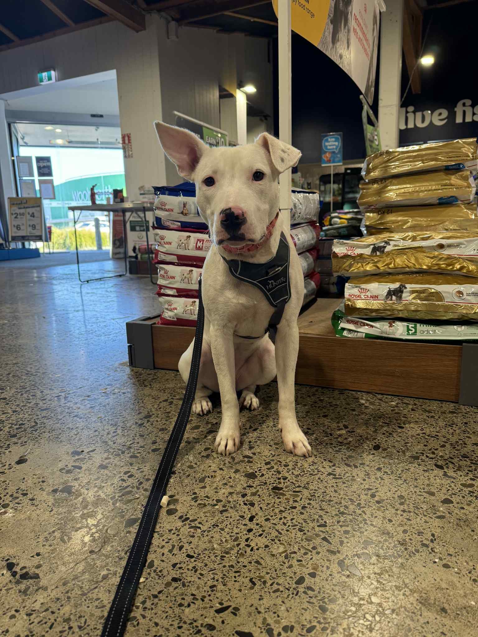 Meet Moo Moo. Moo Moo is a gorgeous young girl, around 10 months old, who is still learning that the world can be a safe and wonderful place. She’s made huge progress in the 6 weeks she’s been in foster care, but she will need a patient, experienced home to help her continue to grow. She is around 18kgs and we don’t think she’ll get any bigger. Moo Moo would thrive in a home with a confident, friendly resident dog — this is when we truly see her come out of her shell. Having a calm canine role model gives her confidence and reassurance in new situations. She is currently scared of the leash and leash pressure, so we’ve been working gently on this by taking her to secure, enclosed fields and spaces where she can run freely and build confidence at her own pace. She improves every single day, but she can still be skittish when spooked. Because of this, her new home must have solid, secure fencing and will need adopters who understand that progress isn’t linear and who are happy to go slow. Moo Moo will likely take a few months to fully settle and feel safe, but those months will be incredibly rewarding. Watching her blossom, gain confidence, and learn to trust is truly special. Her crate is her safe space, and she chooses it when she needs comfort — but once she trusts you, she also loves snuggling on the couch and being close to her people. She will benefit hugely from calm people-watching, routine, and building a strong bond with her human. Moo Moo isn’t a “plug and play” dog — but for the right home, she will be a deeply rewarding companion with so much love to give. Fostered in Glenfield.