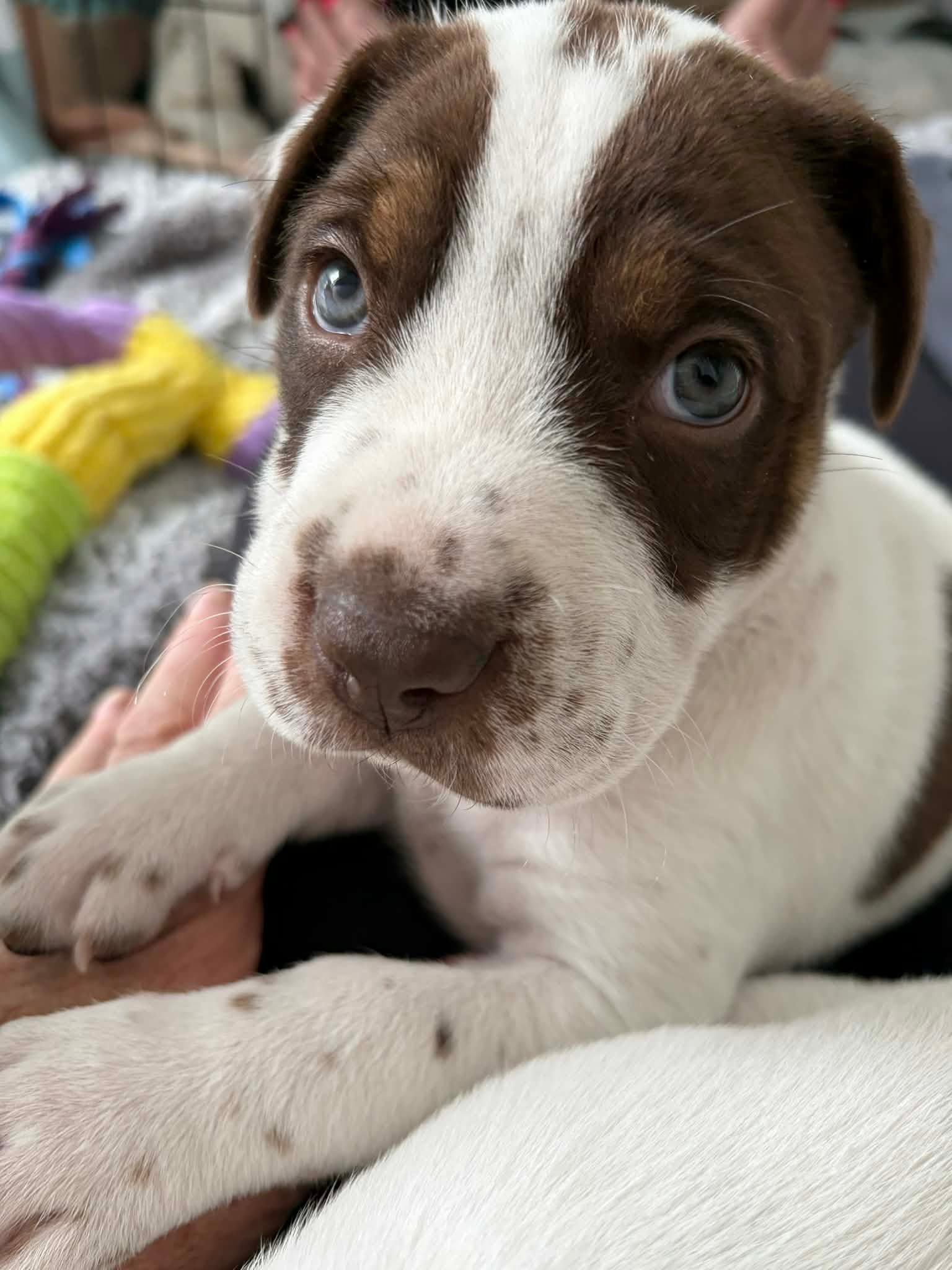 Olive Female | Born 11 January 2026 | Fostered Long Bay Olive is the bold, bright spark of the litter — a confident little leader who walks into life like she owns it. Fearless and full of personality, she is also brave and wonderfully self-assured. She absolutely loves her food (training treats will be her love language!) and she’s not afraid to let her siblings know she’s in charge. That strong personality will thrive with consistent guidance and positive training — she’s going to be a smart, capable girl in the right hands. Despite her bossy big-sister energy, Olive has a very soft side. When playtime is over, she’s all about the cuddles and will happily snuggle in close for some quality lap time. Best suited to: A confident home who enjoys a pup with personality and is committed to ongoing training and socialisation. Olive is going to grow into a bold, devoted companion with just the right amount of sass.