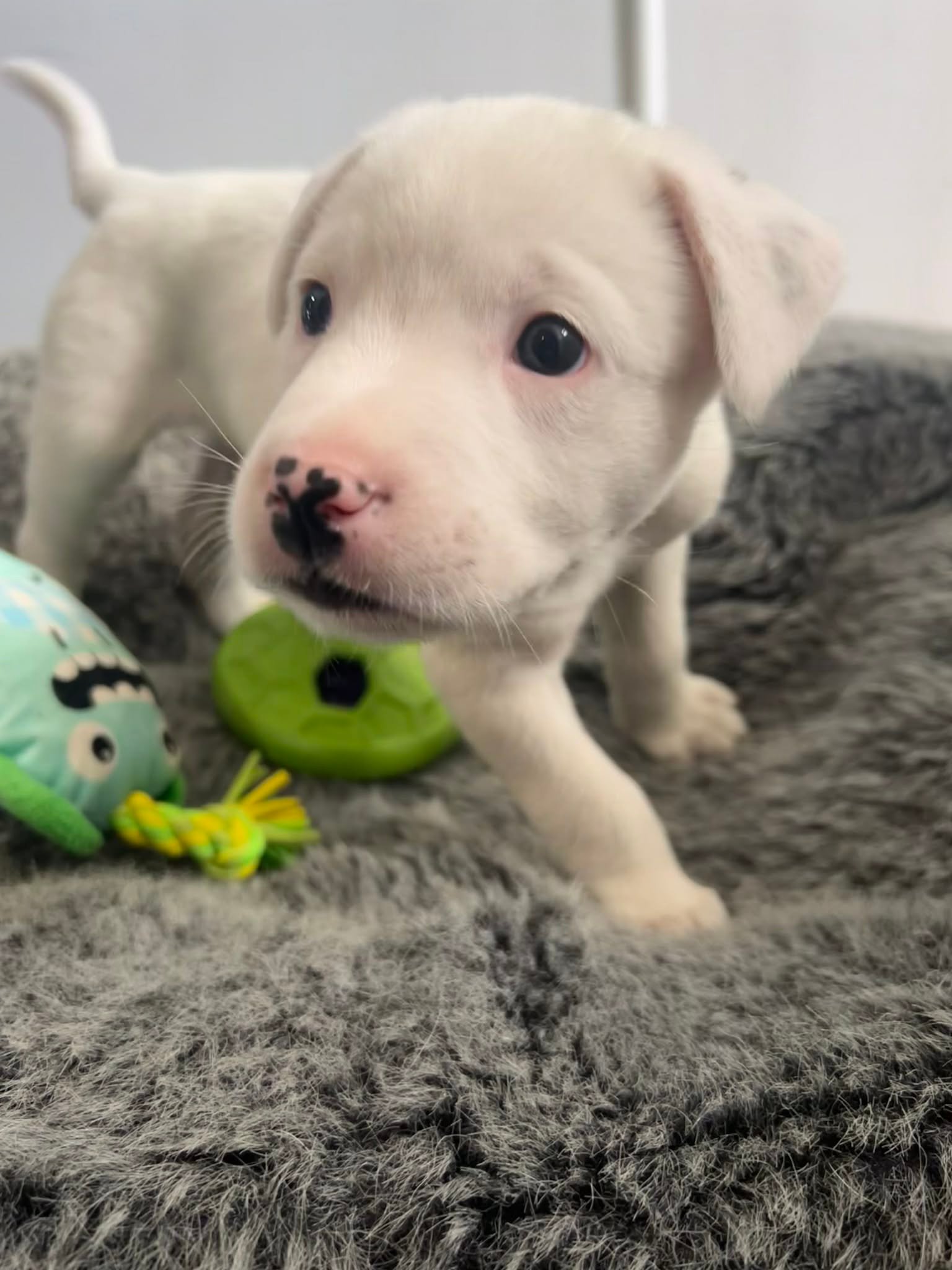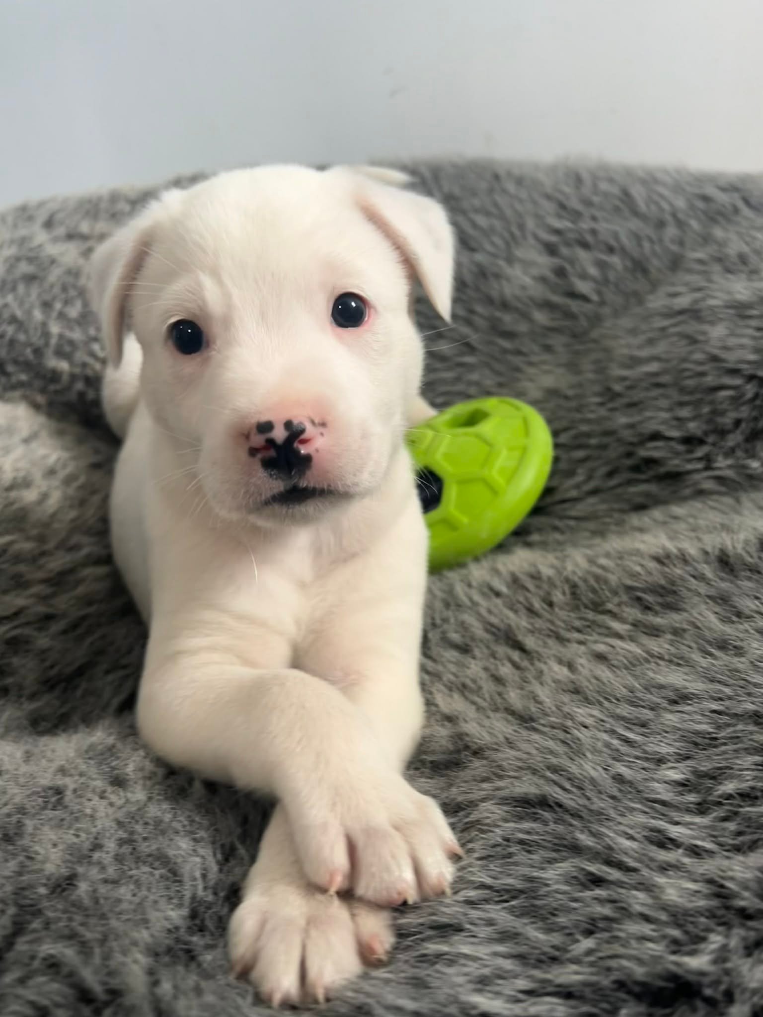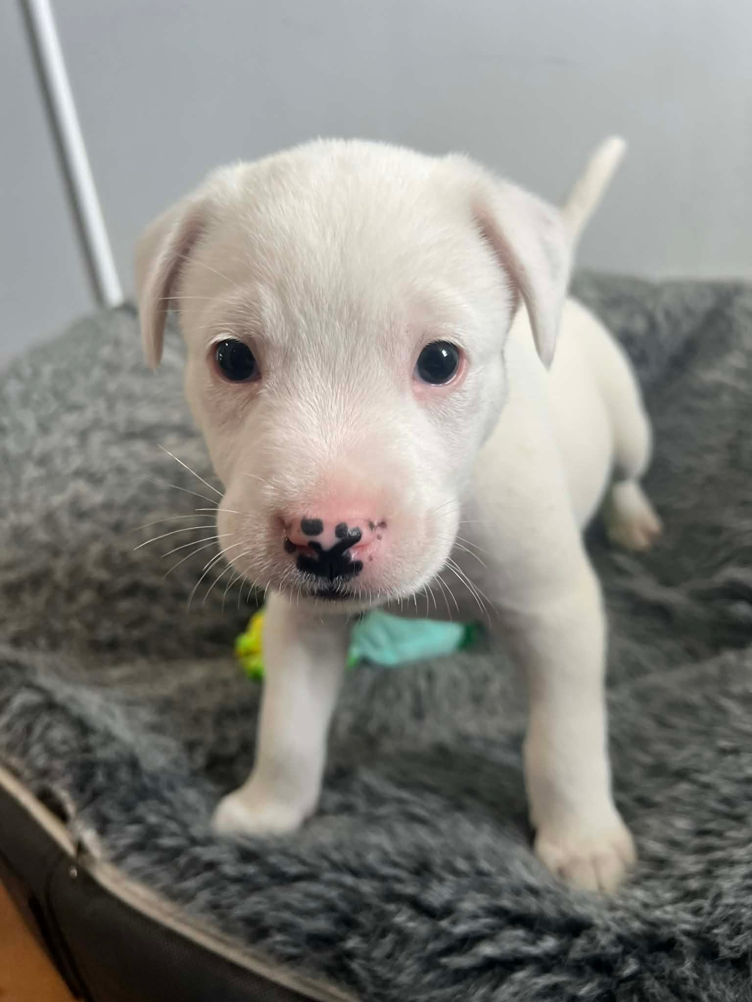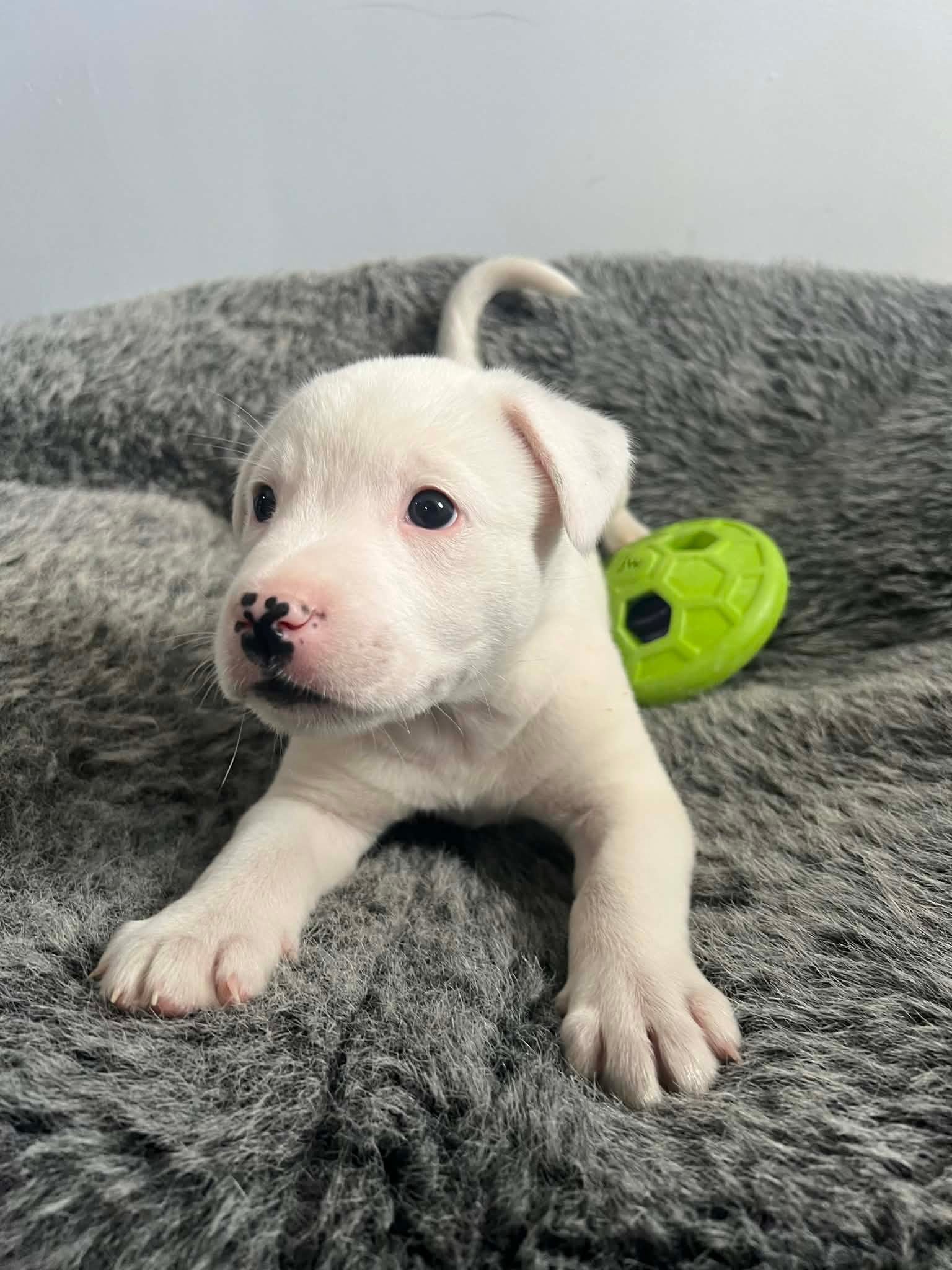 Saint is a gorgeous, goofy boy with confidence and polka dots starting to pop up on his ears and through his coat. He struts around with his tail up high and loves with his whole heart – you can see it in all of his expressions and attempts to play. Born 22/12/25 and fostered in Waiuku, Saint is a loving mixed breed boy with a very expressive face. Saint loves his cuddles and loves other dogs – he is well socialised with our four dogs. Toilet training has started and will be completed by his forever family. He sleeps peacefully all night and has been in an open crate with his brother Niklaus. Saint is a true joy to foster and will be a beautiful best friend to his forever family. His first and second vaccination, microchip and de-sexing are all covered by Saving Hope under the adoption process. Pop in an application to chat and arrange a no obligation to adopt meet and greet.