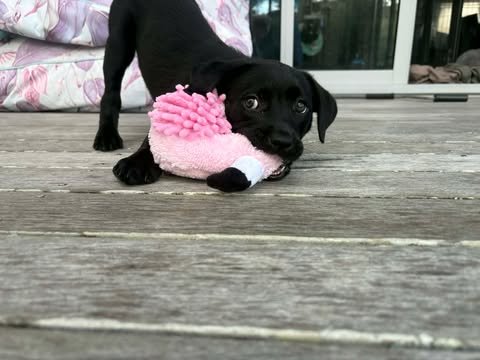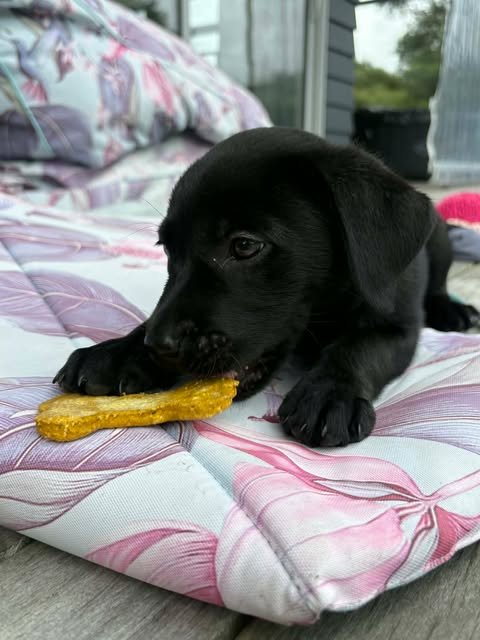Zoe Zoe female DOB: 17/02/2026 fostered in Waitakere Zoe is a cute little pocket rocket and is the cutest little girl. She loves the attention and she loves to play with her toys and her litter brother Zen. Zoe is the cheekier one of the two, she also loves a good tug-of-war as it’s her favourite thing to do. She is toilet trained when you say the “words go toilet” and She is also crate trained when you put her in her crate with a blanket over it and say “go to sleep ” she’ll just go straight to sleep. She has such a kind nature and loves other people and kids. Zoe loves food and treats aswell as playing with the big dogs and cats. Zoe is excited to meet you and to play with you.